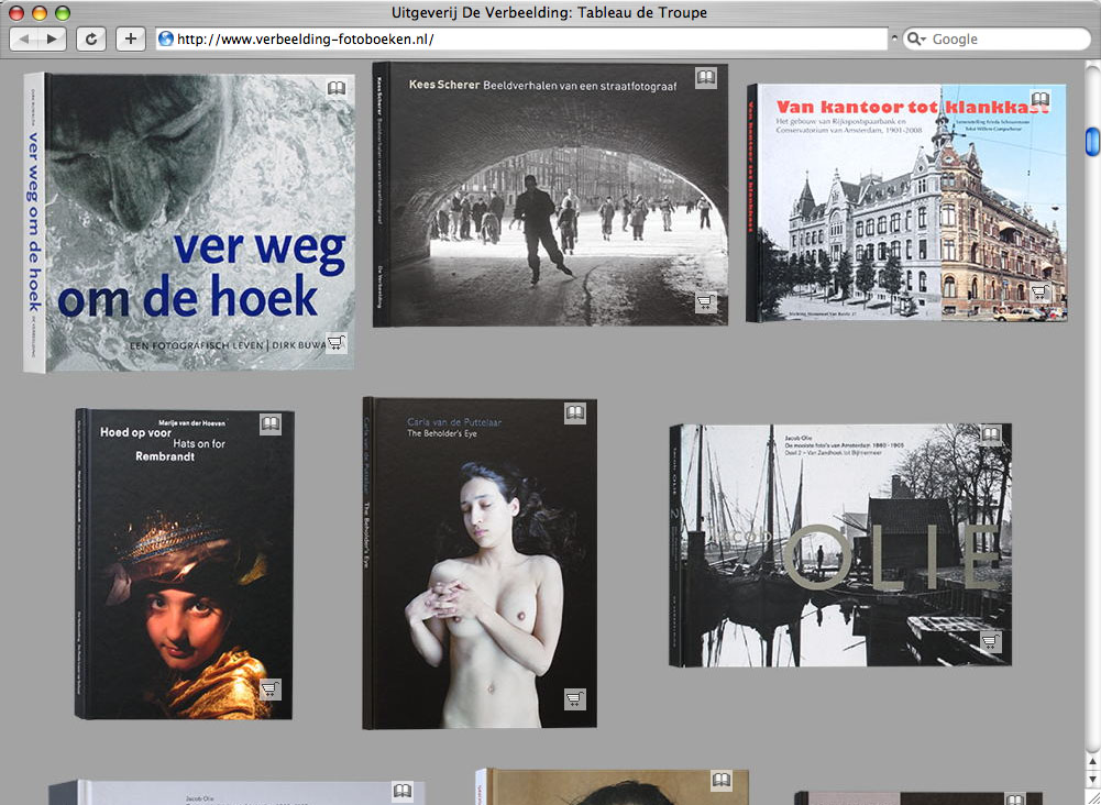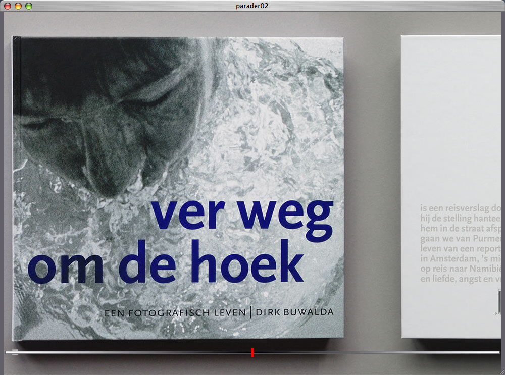 8 ... when - for instance - a choice is made to browse through a photo-book a horizontal overlay appears, starting with the book cover, followed by some textual information and in some cases external links to libraries, archives, bookshops and contextual information on a book or its author ...
