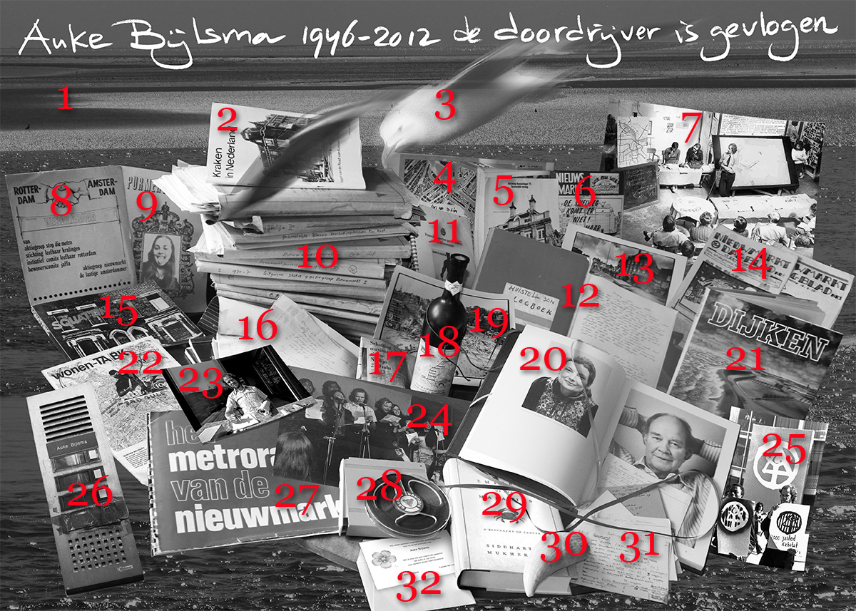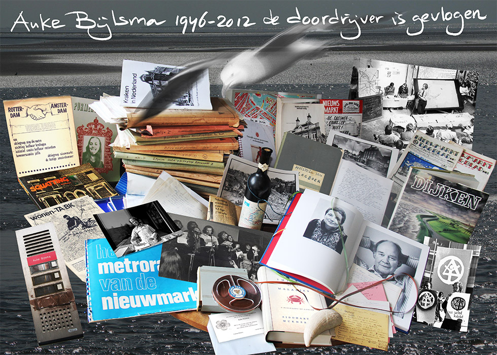 Aanbellen kan niet meer. Zwanenburgwal 40 is leeggeruimd. Precies 40 jaar heeft Auke er gewoond, een historisch pandje dat ooit gesloopt moest worden voor de bouw van een hotel van een Engelse belegger. Dat plan is afgeblazen, als zovele andere bouwplannen die vaak letterlijk doorkruist zijn door de bemoeienis van Auke. Zeker hij deed het nooit op zijn eentje, al dat actievoeren, al dat ploegen door stapels dossiers, kaartenbakken, computeruitdraaien. Een ijzeren geheugen en een methodische geest, die een vulpen op een blocnote aanstuurde, een torende stapel, over de jaren. Hij weigerde te typen en liet dat anderen doen, totdat het computertijdperk hem hierop inhaalde. Vele medestanders waren er bij al dat actieonderzoek, die ik hier – op papier – niet zal noemen, maar wel op de web-pagina's die ter herinnering aan mijn vriend Auke Bijlsma – blijvend – op het internet gezet wordt.