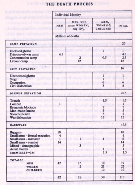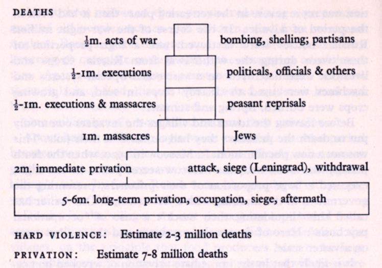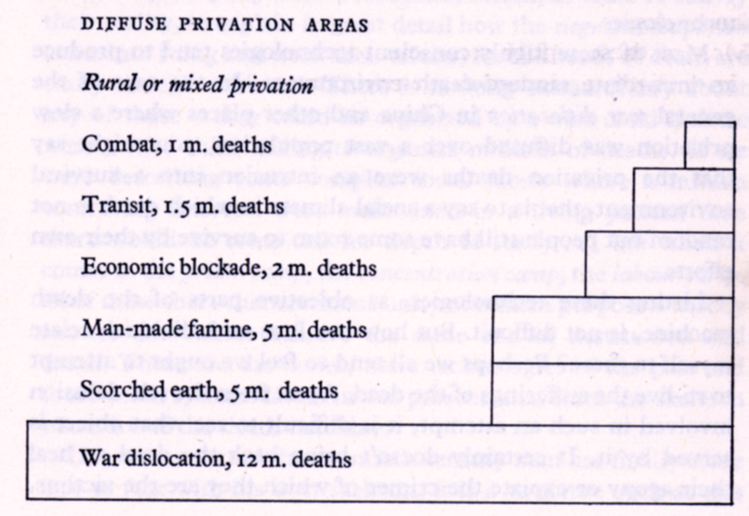 disease, priosner-of-war camps and formal execution, and some massacres.
