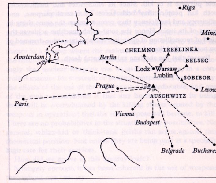 European countries are brought in by train mainly to Auschwitz. [p.79] |