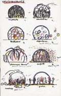 ![]() What & Why “GETTING WET WATCHING HOW OTHERS GET WET WITHOUT GETTING WET YOURSELF MAKING YOURSELF DIRTY WATCHING HOW OTHERS GET DIRTY WITHOUT GETTING DIRTY YOURSELF WASHING OFF THE DIRT PLAYING AND WATCHING HOW OTHERS PLAY WITHOUT PLAYING YOURSELF” This is in short the envisaged program as proposed to the Amsterdam Holiday Committee that had asked Sigma Projects to make a proposal for playful events in one of the big suburban parks during the summer holiday (het Amsterdamse Bos). The idea was to combine water, mud and air (inflatables). several people involved in earlier experiments took part in the design. Budget limitations made that this event did not materialize. This design pointed clearly to a possible recreational use of some of the elements that had been developed more or less in an art context. In the next years several of these ideas materialized in the activities undertaken by the Event Structure Research group (ERG). Most of the participating people were active in the Netherlands with the exception of Graham Stevens who had done several recreational art events in London. One of my favorite proposals for this ‘Waterspelen’ was a big mud bath at the edge of a pond that was covered by a big transparent inflatable structure that covered both the mud bath and the adjacent part of the pond. The kids could only enter the mud bath by diving in the water and underneath the floating part of the inflatable cover. In this way they would always enter and exit clean and washed. There were also a series of spectacles planned like the project for “Six activating sand mountains” of Jeffrey Shaw, with 5 meter high sand pyramids that would be activated by pyrotechnics and inflatables. Safe inflatable costumes were designed by Nico Nijland that would let one float as a toad in the water. Big pneumatic tube elements with simple connectors could be played with and combined in all kind of temporal structures. |