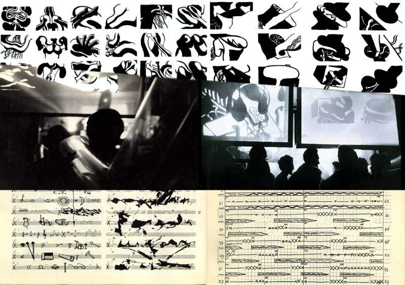 ![]() what A thousand small ink drawings with organic calligraphic elements, alternately made by the two authors, form the basis of this experiment in visual perception. From the original drawings three variations (mirror, negative and mirror negative) were made using a photo copying process. The resulting four drawing variations,complemented by full white and full black frames, were shot by a movie camera using single frame capture. The sequences that were filmed consisted of very fast alternating series of frames with black, white, positive image, mirror image, and negative image. The projected result is a flashing, twinkling and dancing of images. As the film is projected as a loop there is no beginning and no end, and it is only after a prolonged viewing that the spectator will discover this repetition. Though technically the film was produced as an animation film, the makers had no intent to mimick any form of movement. The film studies human perception of fast sequences of still images (”continuous static graphic projection”) also trying out some theories on ‘subliminal perception’, whereby a spectator is supposed to unconsciously perceive a single frame (lasting 38 milliseconds) or a very brief series of frames, with a specific message, within a movie with a different subject. A composition for six musicians, inspired by the images, has later been added as a sound track. The non-traditional music score had many graphic and image elements to be interpreted by the players. The film has been a part of several happenings and installations, often projected on moving and changing surfaces animated by the public, or through translucent screens, in smoke and on liquid surfaces. why The following long quotation from the Synopsis of the film project explains its intention (text probably written in early 1967): “The film was conceived from the need to explore a graphic idea throughout the infinite possibilities of it forms. To approximate its unending capacity for development, extension, growth, disintegration, contra-statement, dialogue, etc.. And to extend this capacity even furtherthrough a co-exploration by two makers. It is a response to the inadequacy of the drawing as such which contains in its unity of oneness, an implicit relationship to absolute ideas and a determined universe. The continuous series, by its a-Platonic multiplicity and documentation of change and the relativity of one among many, becomes a far more siginificant vehicle of expression than the single work as such. The film as a continuous series of sound and image moments, is an expression of BEGINNING, an approximation of the human condition of eternal change, infinite shades of form and fleeting identities. It seeks to excite the perceptive process for indeterminite form within the total flux.” At the end of this synopsis another concept that lead to the film is explained: “This film partakes of a general program for DISILLUSION. Disillusion as applied to film involves the disolution of its conventional theatric experience as a phantasy window. The spatial and visual character of this film will act to confront the observer with art presence and personal presence as equal immediacys.” how ![]() |