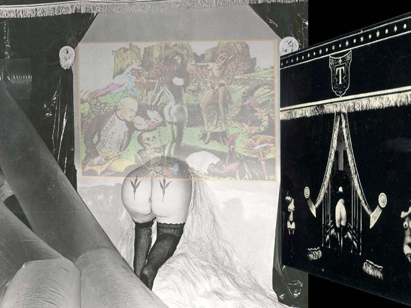 ![]() what A three-dimensional mock-up of one of the paintings of the French surealist Clovis Trouille forms a projection screen that slopes from white lady buttocks into a screen bordered by black curtains. The floor of the space is made of voluptuous undulating foam rubber on which the spectators can lay down and enjoy a series of slide projections of the erotic paintings of Clovis Trouille. |