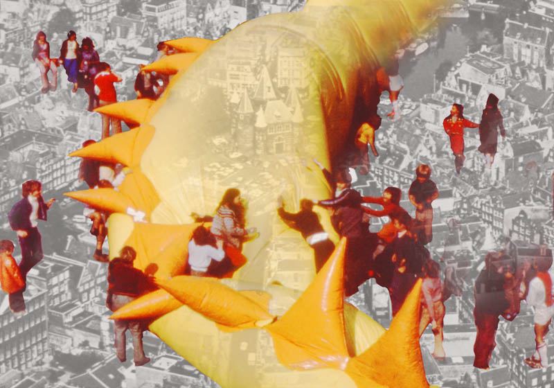 ![]() what During one week a series of playful and cultural festivities was organized in the Amsterdam Nieuwmarktbuurt in which many volunteers from all kind of social and cultural backgrounds took part. The initiative was taken by the “aktiegroep Nieuwmarkt (action group ..) that had been active for two years in this neighbourhood that had on the drawing boards of the municipal planners already been wiped of the map. To boost the resistance and the local morale these festivities were organized, initiated by squatters and their supporters. At first there had been some mistrust on the part of the local population, but with the help of a few original inhabitants who recognized that the neighbourhood was almost doomed and that such social activity could help in changing that, many more people joined in. A former factory hall (De Smederij/Smithy) had been converted in a cultural center and also many street activities took place. The action group had already for four years published a regular weekly newspaper called ‘Nieuwsmarkt’ that conveyed the latest critical news on the town planners undertakings, interviews with older people, photo reportage, poetry and the like. The print shop was also based in the Nieuwmarkt neighbourhood and helped also with leaflets, flyers and posters. This print shop had been started by people who had been active in the Dutch provo movement in the mid sixties. In the same neighbourhood some collective carpenters and construction workshops had been set up that helped out with setting things up for the festivities. Also there was a workshop of the artists that formed the Event Structure Research Group (ERG) that followed up the earlier group called Sigma Projekten. They joined the festivities with some inflatables, one of them being made for a movie by the French American filmmaker William Klein Mr., Freedom. This was a huge inflatable dragon that proved a nice play thing for the kids of the neighbourhood. What was most interesting in the program of that week was the combination of very traditional cultural forms like small orchestras, opera singing, and brass bands with outside movie shows, school children making hand painted posters, inflatables and the outside projection of independent movies and p slides by photographers living in the neighbourhood. why Amsterdam had decided in 1968 to build its first underground system that would have four lines: East, West, North and South. As the subsoil of Amsterdam is very soft and muddy there was at that time not a technique to go underneath the existing buildings. So were an underground/metro line was planned everything had to be demolished, as the building method that was chosen used a system of caissons that would be build over ground and then sunk underground by pumping away the soil below. Because of this there had been fierce debates on the trajectory. The first line was going to be the east line that would connect the new suburb in the Bijlmermeer polder with the Central Station. The first part of the trajectory was going parallel with former railway tracks and a street (part of the former Jewish neighbourhood around the Weesperstraat) that had been widened after World war II. Once in the old town the line was planned to make a wide curve to arrive in front of the Central Station in such a way that the planned West line part could be attached without problems. This meant that it had to make a curve that did cut straight through the Nieuwmarktbuurt that had a fanlike structure of small streets. This neighbourhood had also suffered from the tragic fate of its mainly Jewish inhabitants during the German occupation, but still it had many historical small houses left and several blocks of houses of very good quality that had been build in the thirties of last century. There were other options by routing the underground line through a nearby canal but the arrogance of the planners made that this alternative was bluntly refused. In a slow process of several years the population of the neighbourhood had been forced into thinking that nothing could be done against these municipal plans. There was a local committee of original inhabitants, but their policy was just the amount of compensation money to be paid after a forced removal to another part of town. The underground plan was not the only threat to the neighbourhood. On top of the new underground line a highway for cars was planned that would be bordered by rather high office buildings making one big urban wound with some historic houses at the fringes. This situation combined with a constant crisis especially for young people to get proper housing. So they knew the housing question and at the same time saw how good or usable houses, a whole neighbourhood was going to be destroyed in a wider process that forced people to go and live in the suburbs and daily commute elsewhere to their work. There always had been squatters in the town, but this was mostly in a half secret way. The Provo movement in the mid sixties changed this attitude and several people related to this movement started a squatting organization in 1967/1968. The Nieuwmarkt became one of their focal points and led to a wider involvement than just solving their own housing problem. |