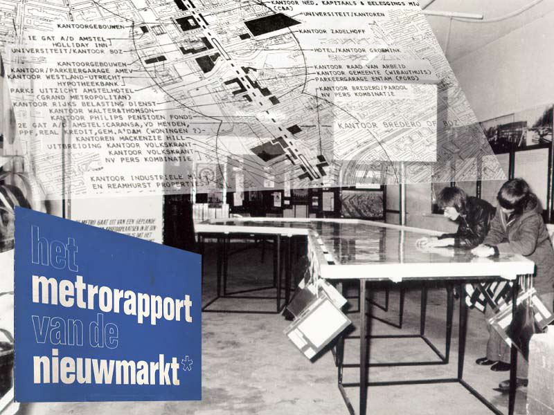 ![]() what A huge map of the whole new underground/metro line from the Eastern suburb Bijlmermeer through the old center of Amsterdam, including the Nieuwmarktbuurt, to the Central Station. On this map (scale 1:2000) each planned subway station was indicated and all building plans, real estate deals and other urban influences. Each sport had a color code on the map and a number. All along the map documentation dossiers on each case were attached (with rubber bands) so the public could study each case in detail. A series of diagrams and maps showed the wider impact of such heavy infrastructure for public transport. Comparisons with the more flexible tramway system as it exists in Amsterdam and how that could be improved where made. Also local history was told in a serious of photo panels with big letter captions. This ’museum’ has been an important tool for generating public debate. A detailed report was published in the same time that retook several of these maps and graphics. It was further based on an official government inquiry into the case of the Nieuwmarktbuurt that had been held to somehow calm down the growing support for the actions against the trajectory of the underground straight through a historical neighbourhood of the inner town. |