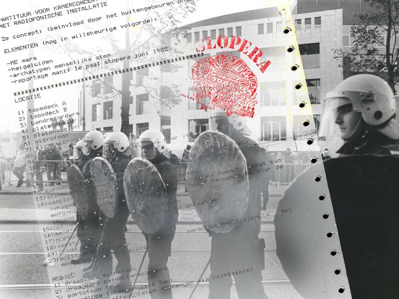 ![]() what At the day of the official opening of the much disputed and contested ‘Stopera’ building in Amsterdam, another initiation ceremony takes place: the ‘radiophonic installation of the Stopera’. This ceremonial performance and concert focussed on the outside of the building, while the local authorities and their invitees - among whom the Dutch Queen - were concentrating on the inside with a new opera and ballet performance. One hour before the offical opening the Radiophonic Installation started. Around the huge building, four high power sound systems had been installed in windows and on roofs of neighbouring houses. From these systems a life sound mix was emitted that was broadcasted from a house right opposte the Stopera building. The sound mix consisted of both pre-recorded elements and life sound input. A score for the event that lasted several hours had been made, allowing for some direct imporvisations. Sound recordings made during the construction of the Stoprea, especially the immense noise of several drop hammer machines that drove during monthes hundreds of founding poles in the soft Amsterdam subsoil, were combined with recordings of the tribal singing (cultures that do not need a huge building for their music). At the same time a noise demonstration took place around the Stopera building with the crowd waving metal plates. These sounds were taken life and mixed in. The riot police took also part in this radiophonic-concert, their coordinating radio broadcasts were picked up by a scanner and mixed in with the rest of the sound. A mobile telephone (a rarety at that time) was smuggled inside the opera to give some life feed. Radio Populare in Milano had a direct link through a telephone line with Amsterdam and re-casted the program, also adding live interventions to the Amsterdam broadcast. Special kinetic effects were added to the scenery at the moment that the riot police started to encircle the house from which the broadcast was made: tens of toy bouncing balls were thrown - as a present - from the window admidst the policemen in their special riot outfit. This funny and joyful event releaxed the somewhat tense atmosphere and the house was not stormed after all. Later in the evening slides were projected on the white marble front of the building, with one of the texts “is this real marble?” as in the Netherlands marble is an expensive building material and overt public display of richness is rare in the building history of the town. On the roof of a house that could be clearly seen from the foyer of the opera building a light journal was continuously displaying commentaries and critical poetry. The radiophonic installation ended with the audience leaving the Stopera building. A sound recording have been made of the event. The next day most newspapers had negative headings classifying the Radiophonic Installation as “kabaal” (hullabaloo), clearly failing to understand the conceptual consistency and the communal creativity of this event. why For almost a century the need for two public buildings have been on the agenda of the city of Amsterdam: a town hall and an opera. In the seventeenth century a new town hall (stadhuis) was build bordering the Dam square in the center of the old town. For its time it was a huge and luxurious construction expressing the international power of Amsterdam as a seafaring and warring nations, a trading center and the base of the East and West Indian Companies. All that changed at the end of the eighteenth and beginning of the nineteenth century when the Netherlands became a part of the French empire. The brother of Napoleon, who was made king of the Netherlands, took the Amsterdam town hall as one of his palaces. After the French defeat and the restoration of European nations, the Netherlands became a kingdom and the new Dutch royals kept the expropriated Amsterdam town hall, as one of their palaces (though none of Dutch monarchs ever resides in Amsterdam, that was thought to be too republican and rebellious). The local city council had to find some less representative abode. Since that day the town had its ‘town hall question’ and over the decades as many plans were proposed as rejected. After the second World War and its deportation of the Jewish population, which left the former Jewish quarters of the town around the Waterlooplein in disarray, an international competition for a new town hall was launched with the Waterlooplein as the chosen location. In 1968 the winner of the competition - with over two hundred participators - was announced: the Austrian architect Wilhelm Holzbauer. His plan faced a lot of criticism: some called it a bunker; 'republicans' said there was no need for a new building when the royals would give back the original town hall; and for ten years there were also problems with finding the necessary finances. The other building question on the Amsterdam municipal agenda was the project for an opera house. Amsterdam had no real opera tradition as a ‘burgher’ city, formally it is the national capital, but not the seat of government or royal court. There were some attempts by a rich corn merchant (and speculator) Julius Carl Bunge, who was an admirer of Wagner and headed the Dutch Wagner Association, to build an opera house in the beginning of last century, located next to the Amsterdam music theater 'het Concertgewbouw', but this projects fell through. In the fifties there was a new initiative of the municipality to build an Opera, but again the necessary finances failed and also the 19th century popular neighbourhood were this new building was situated was protesting against what they rightly saw a a threatening gentrification of their surroundings. Then, at the end of the seventies these two building questions were combined and the national government promised to give a substantial part of the needed capital to build what has been popular baptized the ‘Stopera’ (town hall - music theater c