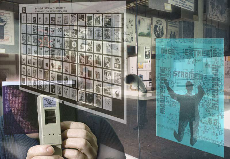 ![]() what An exhibition in the V2 center, at that time housed in an old factory in ‘s Hertogenbosch in the South of the Netherlands. This part of the exhibition was based on the collection of the Documentation center of Modern Social Movements of the University Library Amsterdam. An overview of radical forms of publishing as it grew from the international cultural underground movement was shown. Publications in vitrines and poster like objects both hung from the ceiling on steel cables. There were also some references to the Europe Against The Current manifestation that was planned next year September in this exhibition. The catalogue had as an appendix a selection from the materials on show in microfiche format. |
