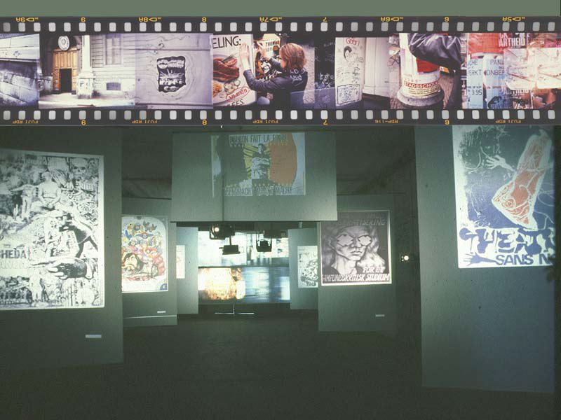 ![]() what An exhibition on alternative and radical information carriers from the last 25 years from Europe, both West and East. Showing the differences in design and expressive methods because of differences in available technology and financial resources. Samizdat publications from Eastern Europe versus cultural underground publications in the West. Also some examples of printing techniques like the primitive silkscreen frames used in Hungary. A good example were some posters from the Soviet Union, independently published, so they were hand painted, as no printing facilities were at that time available to independent operating persons or groups. Another example were Czech samizdat periodicals made by hammering a text on a typewriter with several layers of carbon paper. Mostly photocopied Punk fanzines from the West showed how means of production and independence are related. Different information carriers were on show: posters, printed T-shirts, audio cassettes, vinyl records, hand made collage books, photocopied and duplicated materials, postcards, and so on. These materials were displayed in specially designed vitrines hanging on steel cables from the ceiling of the gallery (in other places a scaffolding construction was set up for hanging). Each panel had a background of wooden board with many regular holes. In these holes special spiral steel springs could be put at any spot to fasten the material without a need for pins, tape or glue. At a second stage some vitrines did have simple sound system with an endless looping tape that started to play when a visitor approached the vitrine. The materials shown came from the collection of the Department for the Documentation of Modern Social Movements of the University Library Amsterdam and also several on loan from people participating in the Europe Against the Current manifestation. why From 1987 onward contacts were made with publisher and performers from all over Europe. This is the manifesto that has been send around in many different languages: MANIFESTO In Europe, the birthplace of the nation states with their 'national' cultures exchanged in the international markets like commodities another exchange has been going on for many years of another type of culture that exceeds the limitations of nationhood takes no account of the power blocks ignores the accepted norms The urge to express oneself to create one's own forms to offer one's own interpretations to appropriate all the means of expression gives birth to products like posters, postcards, books, pamphlets, periodicals, slides, photos, films, audio-cassettes, records, videotapes, assemblages, installations, computer systems The circulation of these products is not limited to the circles of their makers but extends far beyond: a lively international exchange notwithstanding censoring notwithstanding border checks notwithstanding financial limitations The manifestation EUROPE AGAINST THE CURRENT seeks to give an extra stimulus to this free and independent exchange of information - aims to establish new cross connections between groups and currents from the Urals to Iceland from the North Cape to Gibraltar - offers the opportunity to make new contacts with a new audience The manifestation - ignores usual barriers between disciplines: visual arts-literature-music-theatre-film-.... seeks to stimulate multidisciplinary approaches - does not confine itself to a single area: politics-minorities-environment-emancipation-.... but, by presenting these areas and others, wants to show what connects them - does not seek only to bring together people who share the same opinions but wants to show the wide variety of opinions Independent publishers, alternative culture makers radical producers come for three days have your creativities flow together: EUROPE AGAINST THE CURRENT |
