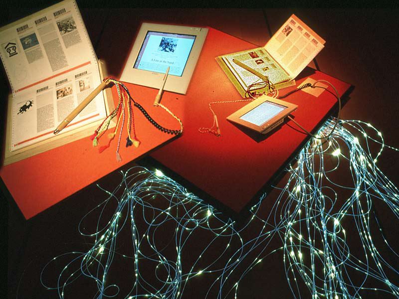 ![]() Tjebbe van Tijen (author) Rolf Pixley (contributing author) 9 contributing persons 2 contributing organizations 1 locations who persons Breenen, Jan van: technical advice microfilm Gales, Fred: sound production Gastkemper, Erik: equipment, technical advice, support Jungbaum, Charly: hard/software integration, technical advice Os, Hans van: construction Pixley, Rolf: hard/software integration, software development Schuurman, Otto: construction Spitteler, Henk: support Tijen, Tjebbe van: concept, production organizations NLD Amsterdam, Gallerie Het Getal 0 : accommodator NLD Lisse, Microformat Systems: facilitator microfilming, supporter where/when locations (1994) NLD Amsterdam, Gallerie Het Getal 0 |